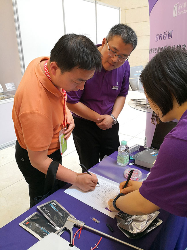 在創(chuàng)新研究基礎(chǔ)上,本次會(huì)議吸引了國(guó)內(nèi)外院士、知名專家學(xué)者。大會(huì)期間,我司速豐?可吸收止血結(jié)扎夾展臺(tái)一如既往地受到眾多與會(huì)者的關(guān)注與互動(dòng)體驗(yàn),并現(xiàn)場(chǎng)登記申請(qǐng),希望獲到產(chǎn)品試用機(jī)會(huì)。