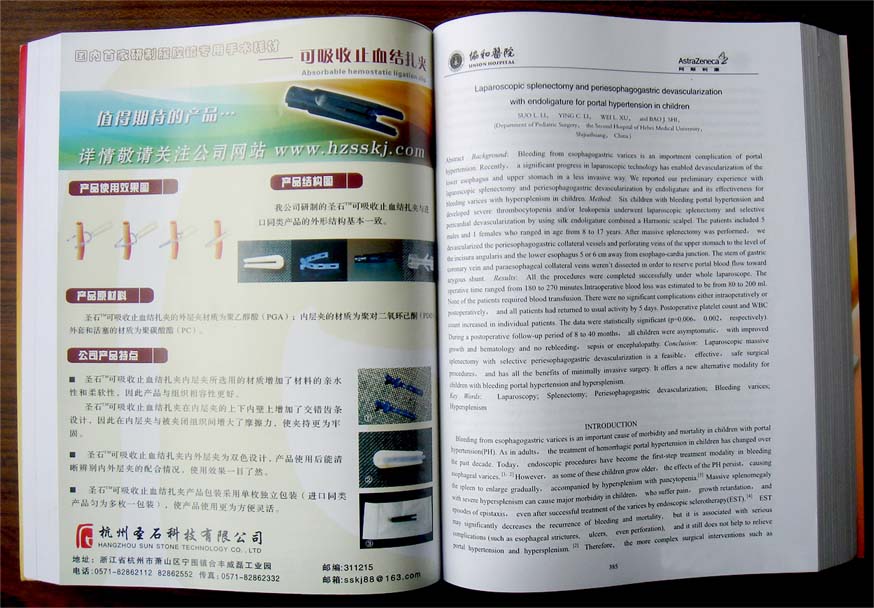 我公司產(chǎn)品—可吸收止血結(jié)扎夾介紹收錄研討會論文匯編